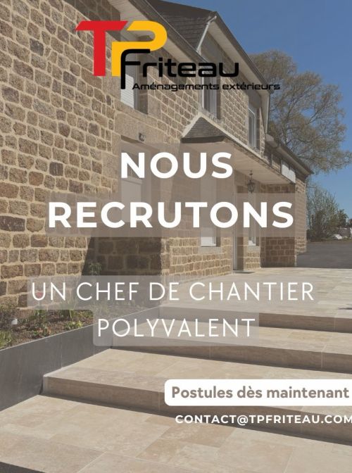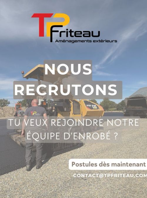 EXCELLENT Basée sur 134 avis Publié sur Mathieu bourelTrustindex vérifie que la source originale de l'avis est Google. J'ai fait appel à l'entreprise TP Friteau pour la réalisation de clôture, bien que ma demande soit très urgente ils ont su s'adapter et respecter les délais avec un travail soigné, de très bons conseils et un tarif correct.. Très satisfait, je recommande !!!Publié sur Jean-Paul PETITPAS (SPRMotos35)Trustindex vérifie que la source originale de l'avis est Google. Belle équipe performante qui s'adapte à vos idées et propose des créations intéressantes. Très réactif et soigneux, je recommande.Publié sur Gwena Elle35Trustindex vérifie que la source originale de l'avis est Google. J'ai fait appel à l'entreprise TP Friteau sur conseils d'un ami. J'ai apprécié les conseils lors de la réalisation du devis sans pour autant avoir le sentiment de faire gonfler la facture volontairement. Pas de dépenses superflues. Un grand merci aux 2 équipes (terrassement et enrobage) qui ont effectué un très beau boulot. Le rendu est magnifique. J'étais septique pour les pavés devant le portail mais finalement c'est ce que je préfère. Une entreprise sérieuse, réactive, à tarif raisonnable avec des gars très sympas prenant le temps de m'expliquer leurs travaux et me donnant les bons conseils pour la suite. Par ailleurs, un besoin de "SAV" etait nécessaire pour régler mon portail et cela a été fait rapidement. Je recommande sans hésiter TP Friteau. Quelques photos du résultat + 1 avant travaux ! Merci 🙏Publié sur Jean-rene duvalTrustindex vérifie que la source originale de l'avis est Google. réalisation de ma cour et chemin d'accès en enrobé . très bien conseillé, tarifs dans la moyenne et travail soigné.les équipes sont super sympas et nous avons vraiment eu l'impression d'être considéré et respecté comme client . ça fait vraiment plaisir. les gars m'ont demandé plusieurs fois si ça me plaisait, que ce soit lors de la préparation comme lors de la pose d'enrobé. vraiment bravo, c'est si rare de voir des salariés soudés pour la réussite de leur entreprise . le chantier était impeccable, et le matériel rangé chaque weekend. je recommande vivement cette société qui tiens ses engagements et ses délais .Publié sur Willy LeblondTrustindex vérifie que la source originale de l'avis est Google. Travail au top pour une pose de clôture rigide soubassement ardoise,pavé,plaque d'ardoise et goudron une très bonne équipe et entreprise. Je recommande 😉👍Publié sur Armelle MallecotTrustindex vérifie que la source originale de l'avis est Google. Un très grand merci à theo commercial chez friteau,très compétant !!! Professionnel !!! Très à l'écoute dans notre projet d aménagement extérieur de notre maison !! Une entreprise et une équipe très sérieuse et très rigoureuse !!! Nous recommandons vivement !!!!!!Publié sur N 1 jainTrustindex vérifie que la source originale de l'avis est Google. Entreprise sérieuse, bien conseillé et une équipe de poseur au top.Publié sur Emilie TROCHERIETrustindex vérifie que la source originale de l'avis est Google. Une équipe à l’écoute du client et qui a été de bons conseils lors de la réalisation. Un travail efficace et un rendu à la hauteur de nos attentes. Nous conseillons le projet 3D, cela permet de se projeter.
