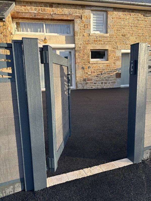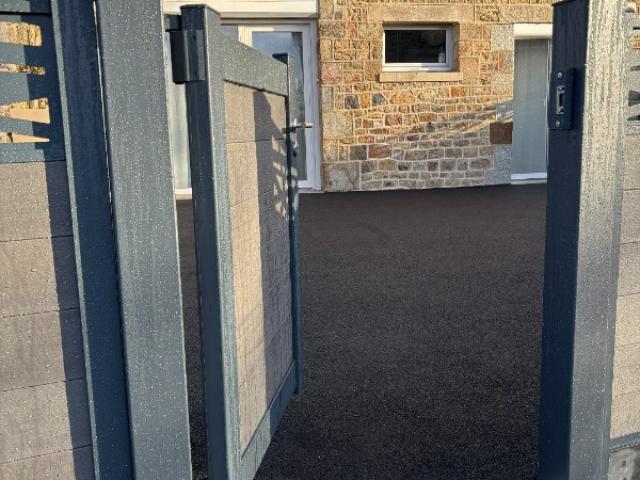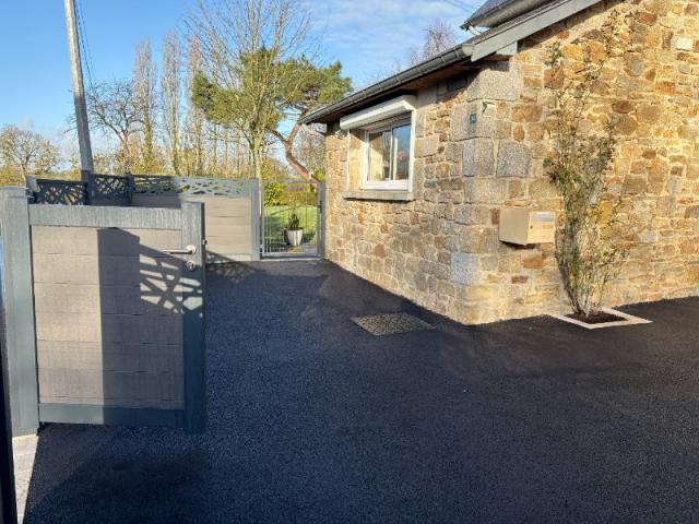Nous avons eu le plaisir de réaliser l’aménagement des cours de ces deux voisins avec des choix qui reflètent leurs préférences : enrobé pour l’un, pavage pour l’autre. Deux revêtements, deux ambiances, mais une belle cohérence grâce à une clôture élégante qui privatise chaque espace tout en conservant une esthétique harmonieuse.