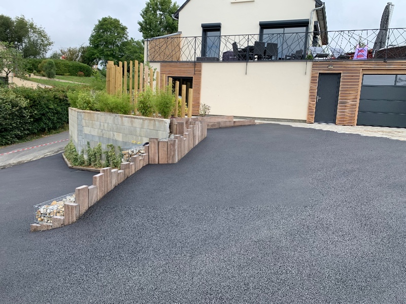 Quant à la grande surface de la cour, elle a été réalisée en enrobé à chaud noir.