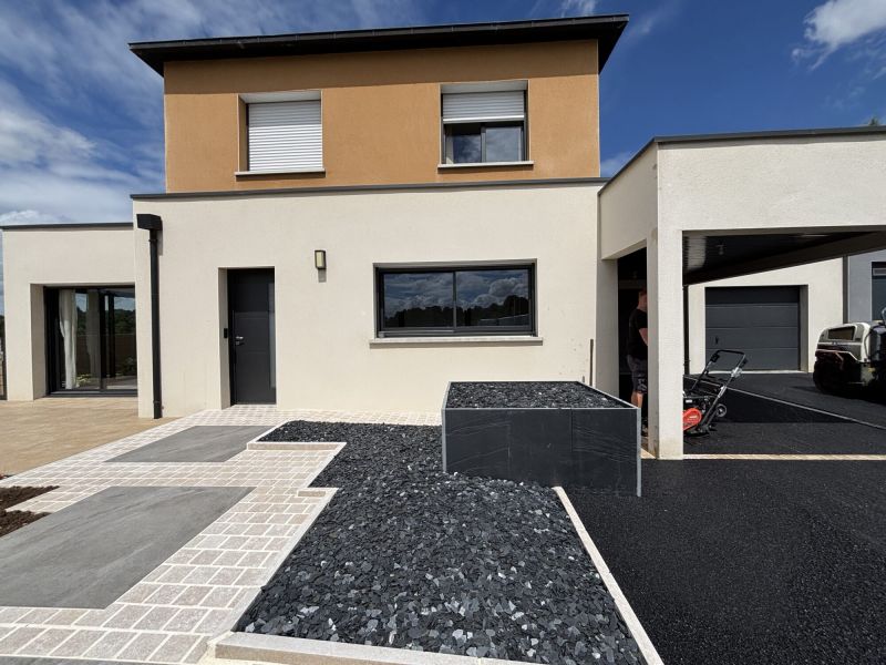 Nos clients souhaitaient redonner vie à leurs extérieurs devenus peu fonctionnels avec le temps. Entre la réfection de la cour, la création d’un espace terrasse et la reprise des accès à la maison, l’objectif était clair : allier praticité, esthétisme et durabilité.