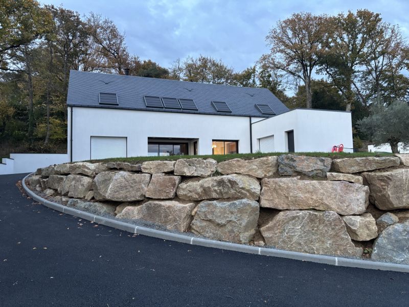 L’enrochement est une solution naturelle et pérenne, idéale pour les terrains en pente ou soumis à des contraintes de retenue de terre.